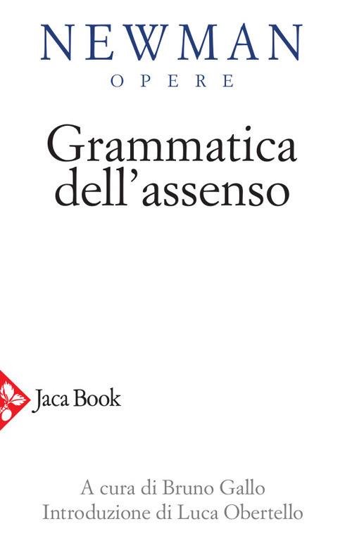«Summa» della vicenda speculativa di Newman che sostanzia con singolare coerenza e continuità tutto l’arco della sua lunga, intensissima esistenza, la Grammatica dell’assenso (1870) presenta ancora oggi una straordinaria attrattiva ideale. Il nichilismo contemporaneo proclama l’impossibilità e dunque l’inutilità di ogni tentativo di individuare il senso dell’esistere. Newman propone uno scavo paziente, tenace e aderente alla realtà data per rintracciare le radici a cui si àncora l’itinerario dell’uomo, dalla prima aurorale consapevolezza alle forme più alte e complesse dell’intuizione di universi e mondi che da ultimo si proiettano al di là dell’orizzonte stesso del mondo presente. La domanda circa la natura e la validità della conoscenza di fede porta così a un cammino a ritroso armoniosamente e coralmente articolato secondo le nervature interne della realtà, verso il fondamento primo dell’esperienza, in cui l’esistere e il conoscere si congiungono in un misterioso, saldissimo connubio. Sta in ciò l’unicità di questo testo capitale, manifesto del metodo naturale del pensare, richiamo all’immediatezza del dialogo con la realtà, invito a ritrovare la semplicità e lo stupore dell’infanzia spirituale. Introduzione di Luca Obertello.