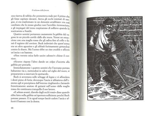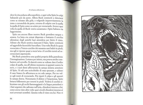 “Buck fu per me una lezione di guerra, di guerriglia, di vita. Io lo vedo come un inno alla libertà. Anzi, alla libertà assoluta." Così Oriana Fallaci, nell'impetuosa introduzione a cuore aperto che apre questa edizione del capolavoro di Jack London, sintetizza la forza primigenia di uno dei più grandi - e misconosciuti - romanzi d'avventura di tutti i tempi. Sorprendente esplorazione dell'animo umano, “II richiamo della foresta” racconta una lotta viva in ciascuno di noi, tra civiltà e natura, e lo fa con meraviglioso e serrato ritmo cinematografico attraverso il "calvario di un cane" che, strappato al padrone e alla California per essere condotto tra le gelide nevi del Klondike, apprende l'arte feroce della sopravvivenza, stritolato e schiavizzato dall'umanità abbrutita nella corsa all'oro. Buck, che non aveva mai visto la neve, impara a conoscere la frusta, la cinghia, il gelo, il sangue e l'odio. Ma sperimenta anche, totale e accecante, l'amore per l'uomo buono che gli salva la vita, e al tempo stesso la voce irresistibile che lo attira nella foresta, l'istinto primordiale del ritorno alla vita selvaggia, intenso bianco e nero delle incisioni di Abigail Rorer, in esclusiva italiana per BUR, rendono con immediata efficacia il buio delle notti del Nord, la luce dei ghiacci sterminati, la potenza sublime della natura che Jack London, attaccabrighe, sognatore, mozzo, avventuriero, ma soprattutto artista, ha saputo raccontare come pochi altri prima di lui, e quasi nessuno dopo.