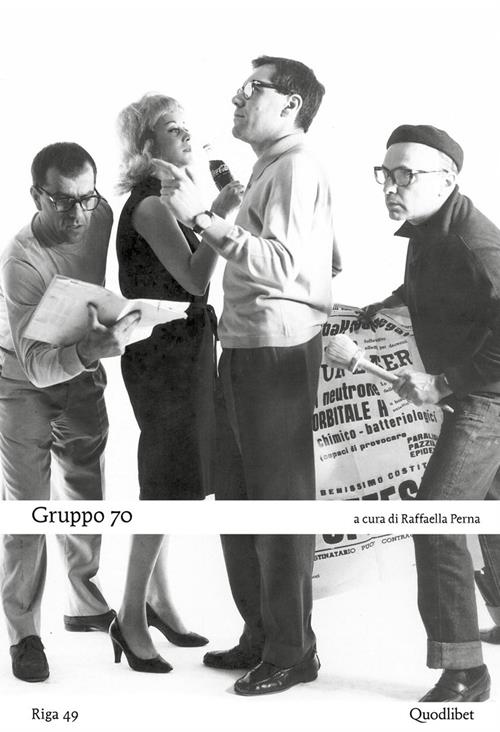 Movimento nato a Firenze nel maggio del 1963, il Gruppo 70 attrae una folta schiera di autori provenienti da vari ambiti disciplinari (pittura, letteratura, musica, teatro), tra cui Lamberto Pignotti, Eugenio Miccini, Ketty La Rocca, Lucia Marcucci, Giuseppe Chiari, Luciano Ori. I nuovi poeti visivi e tecnologici del Gruppo 70 non si limitano ad attingere alle iconografie, ai moduli linguistici e ai generi della cultura di massa, dal fumetto al fotoromanzo, dal giornalismo alla pubblicità, ma, avanzando nella strada già tracciata dalle avanguardie storiche, diffondono le loro opere attraverso i canali della società tecnologica di massa. Pignotti propone infatti “che la poesia venga trasmessa dagli altoparlanti degli stadi durante le partite di campionato o che le mostre di pittura vengano inserite lungo le autostrade”, e sottolinea l’urgenza di collocarsi al di fuori dei meccanismi di mercificazione della società capitalistica mediante pratiche come il collage e i montaggi verbo-visivi, consapevole della centralità assunta dalle immagini nella comunicazione contemporanea.