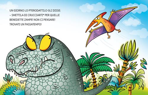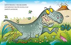 Un libro illustrato per bambini dai 5 anni perfetto per le prime letture, grazie ai testi in stampatello maiuscolo, e dedicato ai bambini che cominciano ad avventurarsi autonomamente nel mondo dei libri. Una storia breve e divertente, un primo libro da leggere da soli con un piccolo glossario delle parole più difficili e un gioco per divertirsi con i personaggi della storia. “Sapete perché T-Rex era sempre così nervoso? Era per via delle sue zampette anteriori…” Età di lettura: da 5 anni.