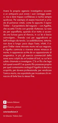 Avere la propria agenzia investigativa accanto a un antiquario può avere i suoi vantaggi estetici, ma a dare troppa confidenza si rischia sempre qualcosa. Per esempio di essere trascinati a un’asta di polverosi cimeli, come fa appunto il signor Tinkler – il proprietario del negozio – con Agatha, che accetta l’invito con grande riluttanza. La noia sta per sopraffarla, quando d’un tratto si accende una furiosa gara al rilancio, in cui lei si lascia coinvolgere… finendo così per aggiudicarsi un bell’orologio da tavolo. La soddisfazione, tuttavia, non dura a lungo: poco dopo l’asta, infatti, il signor Tinkler viene ritrovato morto nel suo negozio, e Agatha comincia a ricevere strane minacce di morte, in apparenza scritte da un appassionato di enigmistica. In più, gli esercizi commerciali della zona sono colpiti da un’ondata di furti, su cui lei è subito chiamata a investigare. C’è un filo che lega tutti questi eventi? E se questo filo passasse proprio per quel contesissimo orologio? Agatha è decisa a scoprirlo, per dovere professionale, per vendicare l’amico morto, ma soprattutto per incastrare chi minaccia di farle fare la stessa fine.
