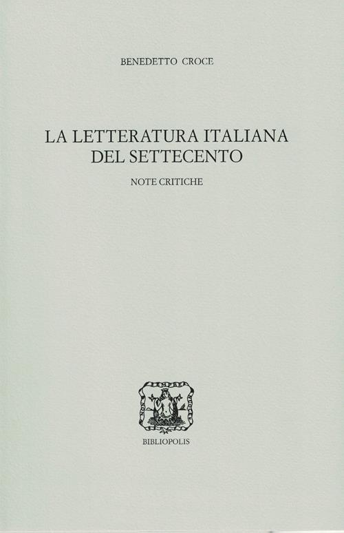 «Il Settecento (…), razionalistico e riformatorio, come generalmente fu e si svolse in tutta Europa, dai monarchi assoluti ai rivoluzionarî giacobini, e non speculativo né poetico, non offerse un terreno molto fertile, specie al paragone delle età precedenti, all'alta filosofia, e meno ancora alla intensa poesia: onde il Saluto, col quale questo volume si chiude, a Vittorio Alfieri, che segnò per l'Italia il risorgere di nuove possenti forze poetiche». Così scrisse Croce quando decise di raccogliere in volume i saggi apparsi sui «Quaderni della "Critica"» nella sezione "Note sulla letteratura del Settecento", aggiungendovi altri dodici testi appartenenti a diversi periodi della sua produzione. Questa raccolta, al pari di quelle sulla letteratura italiana del Cinquecento e del Seicento, vuol far conoscere scrittori ingiustamente poco noti e, nello stesso tempo, rinnovare alcune prospettive nel quadro della storia della letteratura italiana.