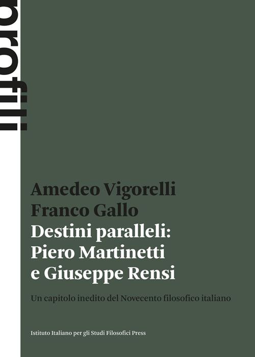 Pochi salienti elementi biografici avvicinano il solitario pensatore piemontese Piero Martinetti, anima schiva del mondo filosofico milanese dei primi decenni del XX sec., e l’intellettuale e attivista veronese Giuseppe Rensi, filosofo di rilievo nella Genova del Ventennio. Accomunati dalla critica del pensiero idealistico loro contemporaneo, pur nelle diverse traiettorie solo in parte convergenti nell’antifascismo, entrambi latori di una filosofia segnata dai temi della moralità e della spiritualità, Martinetti e Rensi segnarono profondamente piccole cerchie di allievi, riconoscenti per le loro filosofie senza compromessi e reticenze. Ulteriormente paragonabili per alcuni elementi di comune interesse (Kant, Schopenhauer e Spinoza, la religione e la questione della libertà, la filosofia come autoesame, l’interlocuzione con il positivismo), i loro percorsi tratteggiano due alternative, individualizzate ma parzialmente sovrapponibili, al pensiero egemonico dell’Italia di ieri e di oggi.