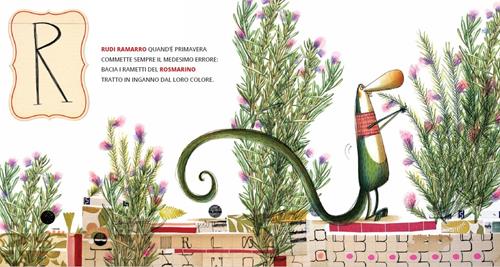 A come Anatra, B come Bertuccia, C come Castoro... ma anche come Arancia, Banana, Carote. 24 brevi storie per un divertente alfabeto che si snoda attraverso cose buone da mangiare e animali come compagni di gioco. E una sfida: quante altre parole si nascondono nelle figure? Lettera dopo lettera, un alfabetiere che propone 24 brevi e surreali storie in versi. Dalla A di Anatra alla Z di Zanzara, per ogni lettera dell’alfabeto un animale, sempre alle prese con qualcosa da mangiare. Le vere protagoniste rimangono le lettere dell’alfabeto, festeggiate dall’intreccio di ripetizioni e allitterazioni presenti in ogni testo. Parole e immagini, un susseguirsi di animali, cibi e bevande, per avvicinarsi in modo ludico e spensierato al suono e al riconoscimento grafico delle lettere. Età di lettura: da 5 anni.