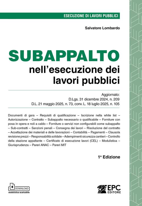 Un’opera chiara, completa e aggiornata che guida professionisti, tecnici e operatori del settore attraverso la nuova disciplina del subappalto nei lavori pubblici, oggi regolata dall’art. 119 del Codice dei contratti pubblici (D.Lgs. 31 marzo 2023, n. 36). Il volume analizza in modo sistematico tutte le novità normative introdotte dal D.Lgs. 31 dicembre 2024, n. 209 e dal D.L. 21 maggio 2025, n. 73, offrendo un quadro aggiornato e affidabile per comprendere le regole che governano appalti e contratti pubblici. La trattazione approfondisce i cambiamenti più rilevanti: dall’eliminazione dei limiti percentuali al subappalto e dell’obbligo della terna dei subappaltatori, alla caduta del divieto di diventare subappaltatori da parte dei concorrenti. Vengono inoltre esaminati il superamento del divieto di subappalto a cascata, la disciplina sulla responsabilità dell’appaltatore e la soppressione del tetto del ribasso massimo del 20% per le lavorazioni affidate. Ampio spazio è dedicato ai nuovi poteri della stazione appaltante, che può individuare lavorazioni da eseguire obbligatoriamente in proprio o da sottrarre all’ulteriore subappalto.