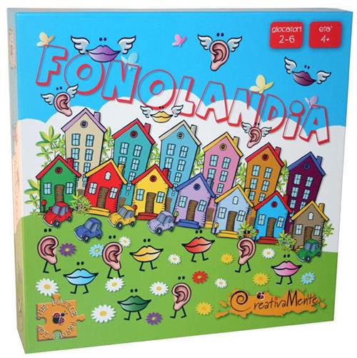 Sviluppa il lessico e unisci i pezzi di puzzle giganti seguendo l'iniziale delle parole.. Fonolandia è il primo gioco dedicato alla fonetica, pensato per bambini di soli 4 anni. Ideato con la logopedista Grazia Rigamonti, che esercita dal 1979 ed è formatrice AID (Associazione Italiana Dislessia), ha come obiettivo principale l’allenamento della competenza fonologica del bambino in età prescolare: non sapendo ancora leggere, si possono utilizzare le illustrazioni per imparare a riconoscere i suoni delle parole. Il gioco è infatti composto da 96 pezzi di puzzle, plastificati e di grande dimensione, con illustrazioni che corrispondono a parole. Il bambino deve associare i disegni delle parole che iniziano con la stessa sillaba o, a partire dai 5 anni, con lo stesso fonema, incastrando i puzzle tra loro. Le diverse forme dei puzzle infatti non permettono l’incastro di disegni-parole che non hanno queste caratteristiche. Giocando con Fonolandia il bambino si allena a riconoscere la sillaba iniziale della parola e poi, nel suo percorso di crescita linguistica, nell’identificazione del fonema iniziale. Altri obiettivi di Fonolandia sono sviluppare il lessico del bambino e giocare con il concetto di classificazione, usando i colori delle quattro categorie del gioco: animali (blu), cibo (rosso), cose (verde) e persone (giallo). Fonolandia è un gioco di società, e già questa è una grossa novità per bambini di soli 4 anni, in cui bisogna comporre dei terzetti e dei quartetti, come pizza - Pinocchio - piscina - pinguino, dove le parole corrispondenti ai disegni iniziano tutte con la stessa sillaba. Qui a destra, il disegno del tennista non si può incastrare con quello della vela: anche il bambino di soli 4 anni ha modo di verificare la correttezza dell’associazione fonetica, grazie al meccanismo di autocorrezione (la forma del piolo del puzzle, che consente o non consente l’incastro dei due pezzi uno sopra l’altro). L’allenamento fonologico deriva dal fatto che il bambino, in base al colore del dado, deve scegliere un disegno, ed è continuamente stimolato a pronunciare a voce alta le parole corrispondenti ai pezzi disponibili, per verificare quali possano unirsi a quelli che già possiede. da 2 a 6 giocatori dai 4 anni 96 pezzi di puzzle plastificati e in materiale spugnoso, ciascuno con un’illustrazione che corrisponde a una parola: 4 parole per ciascuna delle 24 sillabe del gioco, tutte con lo stesso piolo verticale 24 disegni per ciascuna delle 4 categorie e colori, tutti con lo stesso piolo orizzontale 1 dado in legno con le sei facce colorate.
