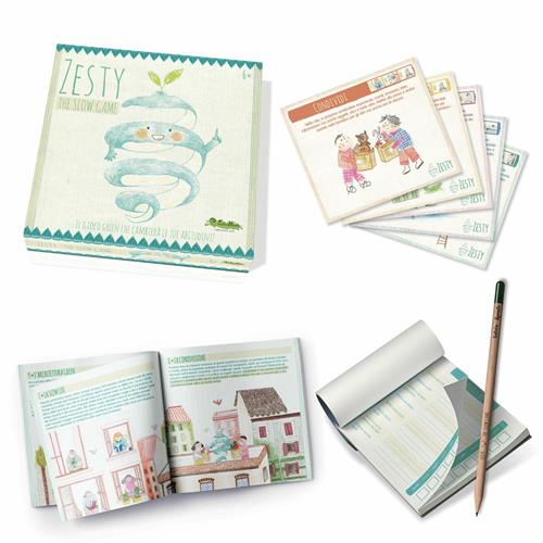 Zesty è un gioco "lento" : l'abilità non si dimostra con la velocità ma con l'impegno e l'attenzione a temi importanti, che potrai approfondire con un libro molto speciale.
