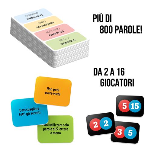 Siete in grado di far indovinare una parola usando solo nomi che iniziano con la S mentre gli avversari… contano ad alta voce? Tra obblighi e restrizioni folli, questo party game coinvolgente e super movimentato metterà alla prova abilità linguistiche attenzione, prontezza e strategia!